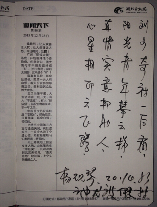 61歲的楊婆婆特有才,給方老師和手機(jī)報(bào)兩位工作人員各贈詩一首